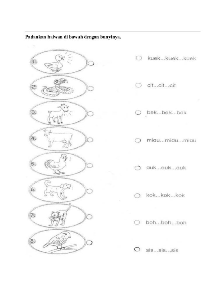Bunyi Haiwan Lembaran Kerja Tahun 1 Pdf